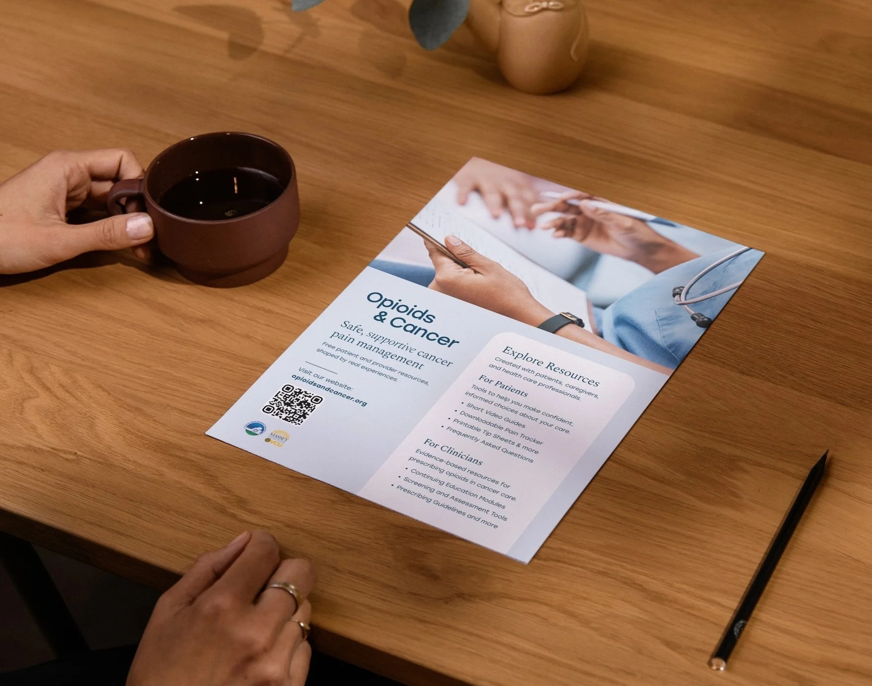 Built in partnership with the palliative care team at VCU Massey Comprehensive Cancer Center and funded by the Virginia Opioid Abatement Authority, this free educational project was developed alongside a community advisory board of current and former cancer patients, caregivers, and family members. Their lived experience shaped the entire project, ensuring the content serves the people it was created for.